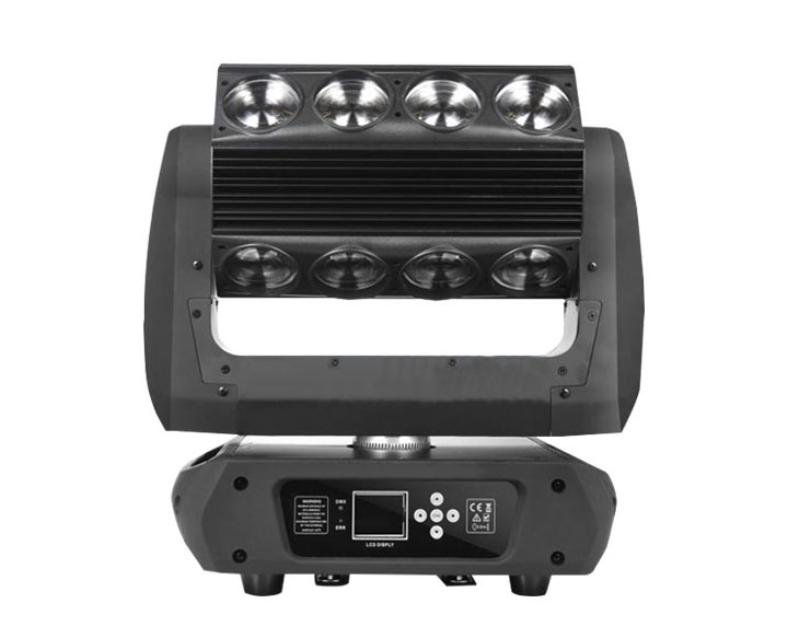 Extremely compact and fast LED moving head matrix beam light.